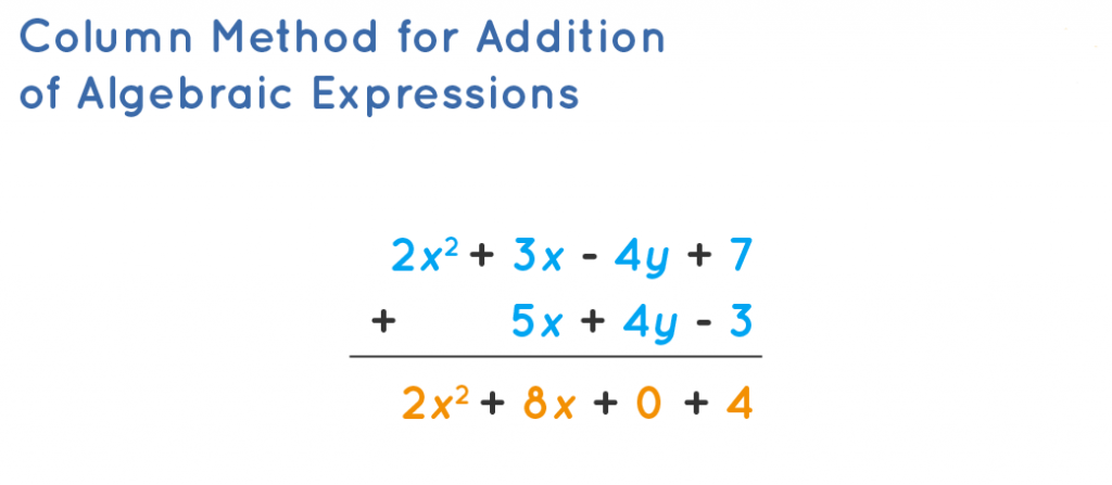 Column Method for Addition of Algebraic Expressions