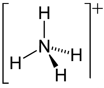It can also be noted that the NH3 molecule undergoes self dissociation when dissolved in water. The molecular autoionization of the ammonia molecule results in the formation of its conjugate base (NH2–) and its conjugate acid (NH4+). The structure of the ammonium cation is illustrated below.