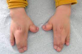 Abnormal fusion of the bones of the hands and feet (syndactyly) — with webbed or mitten-like hands or feet — are also common Apert syndrome symptoms. Some children with Apert syndrome also have heart, gastrointestinal, or urinary system problems.