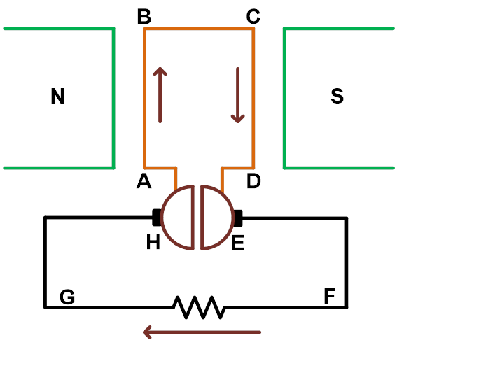 To do so, we need to replace the slip-rings with the commutator. And the arrangement is shown in the figure below.