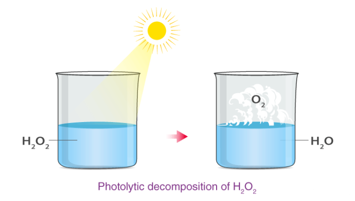 b. Decomposition reactions which require light – photolytic decomposition or photolysis.
