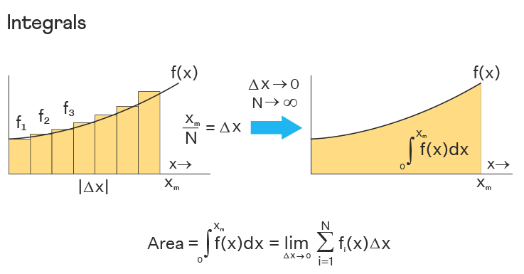 Integral is the representation of the area of a region under a curve. We approximate the actual value of an integral by drawing rectangles. A definite integral of a function can be represented as the area of the region bounded by its graph of the given function between two points in the line. The area of a region is found by breaking it into thin vertical rectangles and applying the lower and the upper limits, the area of the region is summed up. We specify an integral of a function over an interval on which the integral is defined.