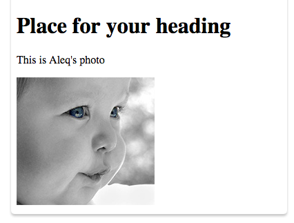 The alt attribute is also required for the <img> tag. It is used to provide browsers with an alternate text in case when the image cannot be displayed (in case of slow connection, when a screen reader is used, etc). Browsers often display the alternative text of the image as a pop-up when you put your mouse over it.