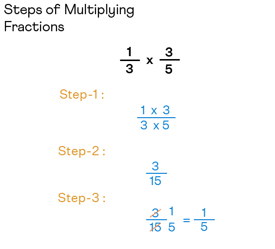 The multiplication of fractions is not like the addition or subtraction of fractions, where the denominator should be the same. Here, any two fractions with different denominators can easily be multiplied. The only thing to be kept in mind is that the fractions should not be in the mixed form, they should either be proper fractions or improper fractions. Let us learn how to multiply fractions through the following steps: