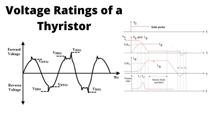 Thyristor ratings or SCR (Silicon Controlled Rectifier) ratings are very much required for operating it in a safe zone. The reliable operation can be done when a thyristor does not violate its voltage and current rating during working period. A thyristor, or SCR may have several ratings, such as voltage, current, power,,