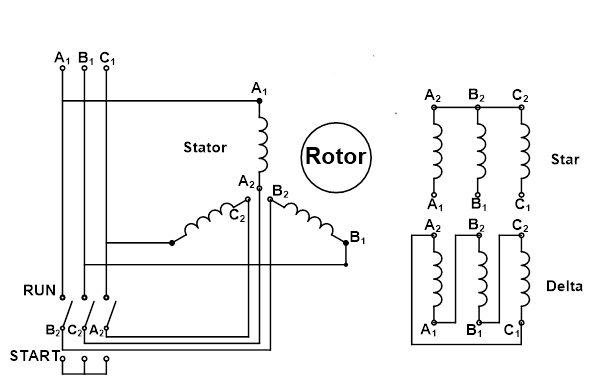 The star-delta starter is used for the squirrel cage induction motor that is designed to run on delta-connected stator winding.