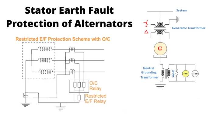 This is to be noted that, the star point or neutral point of stator winding of an alternator is grounded through an impedance to limit the ground fault current. Reduced ground fault current causes less damage to the stator core and winding during ground or earth fault. If the ground impedance is made quite high, the ground fault current may become even less than normal rated current of the generator. If so, the sensitivity of phase relays becomes low, even they may fail to trip during fault. For example, a current lower than rated current makes it difficult to operate differential relays for ground fault.