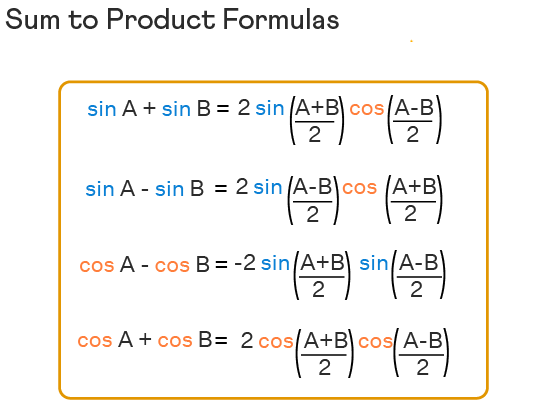 - The sum to product formula are: