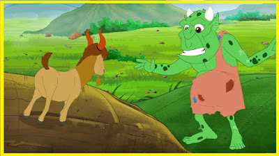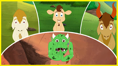“Who is that tip-tapping over my bridge?” growled the troll jumped up the bridge. I am little billy-goat gruff; I am crossing the river to eat the sweet grass on the other side of the river,” said the little billy goat gruff. “Oh no, you are not! I am going to gobble you up!” roared the troll.