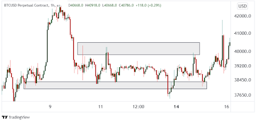 Within crypto, ranges will develop too. After a long and strong trend, the market may trade sideways to consolidate those gains. The sideways consolidation will frustrate the long traders forcing them to close out setting up the next large advance. Also, there are times during the day or over the weekend when trading volumes are low creating a lack of buyers or sellers to push the market.