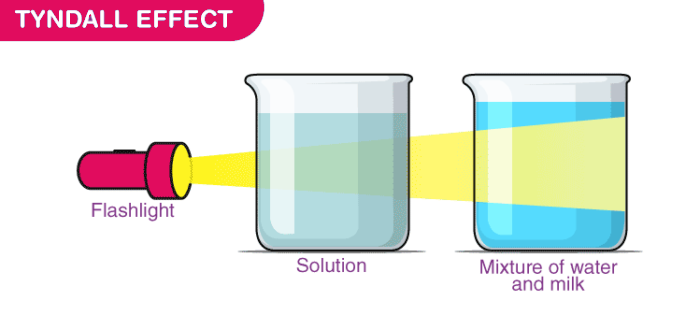 Tyndall effect is the scattering of light by particles in a colloid or else particles in a very fine suspension.