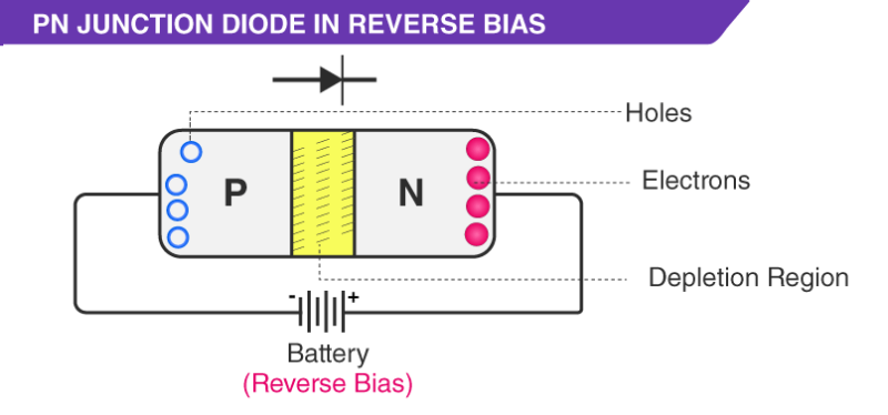 When the diode is in reversed bias, the P-type region is connected to the negative terminal and the N-type region is connected to the positive terminal of the source. Because the positive terminal is connected to N-type, the free electrons are attracted towards that region due to the presence of positive terminal.